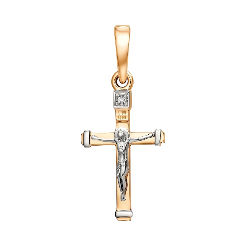 Крест из красного золота с бриллиантом