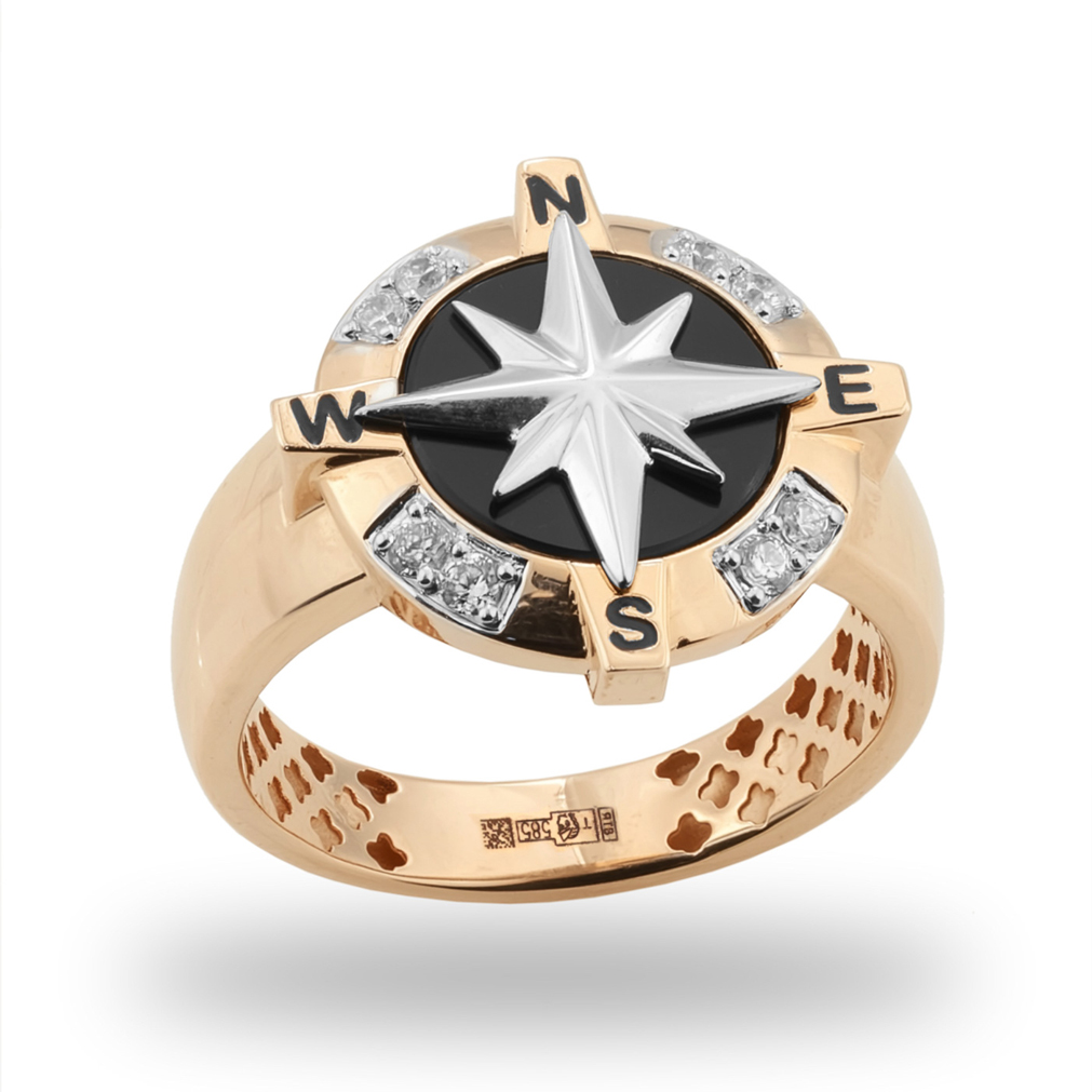 Мужская печатка из красного золота с ониксом и фианитами